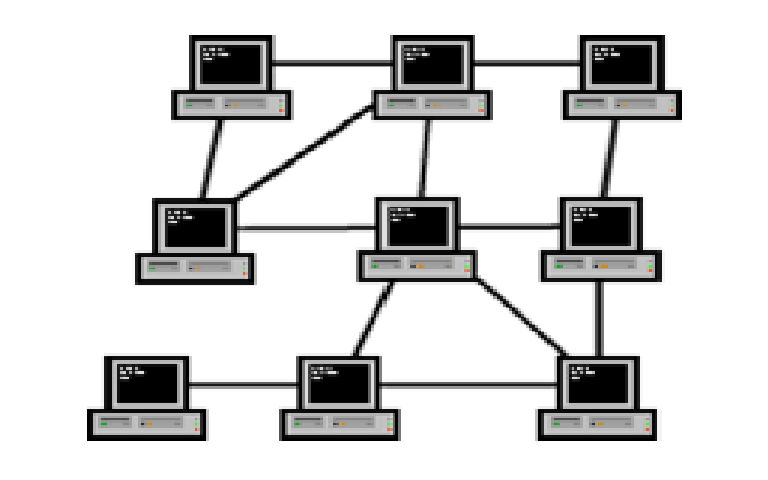 - Cada ordenador tiene sus propias conexiones con los demás ordenadores.